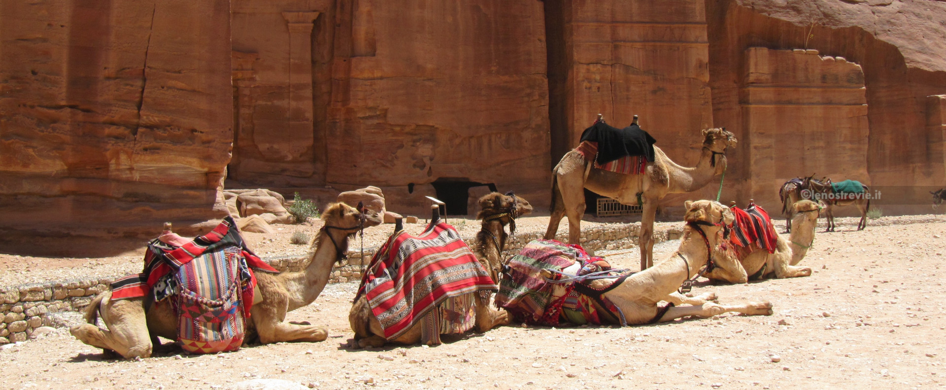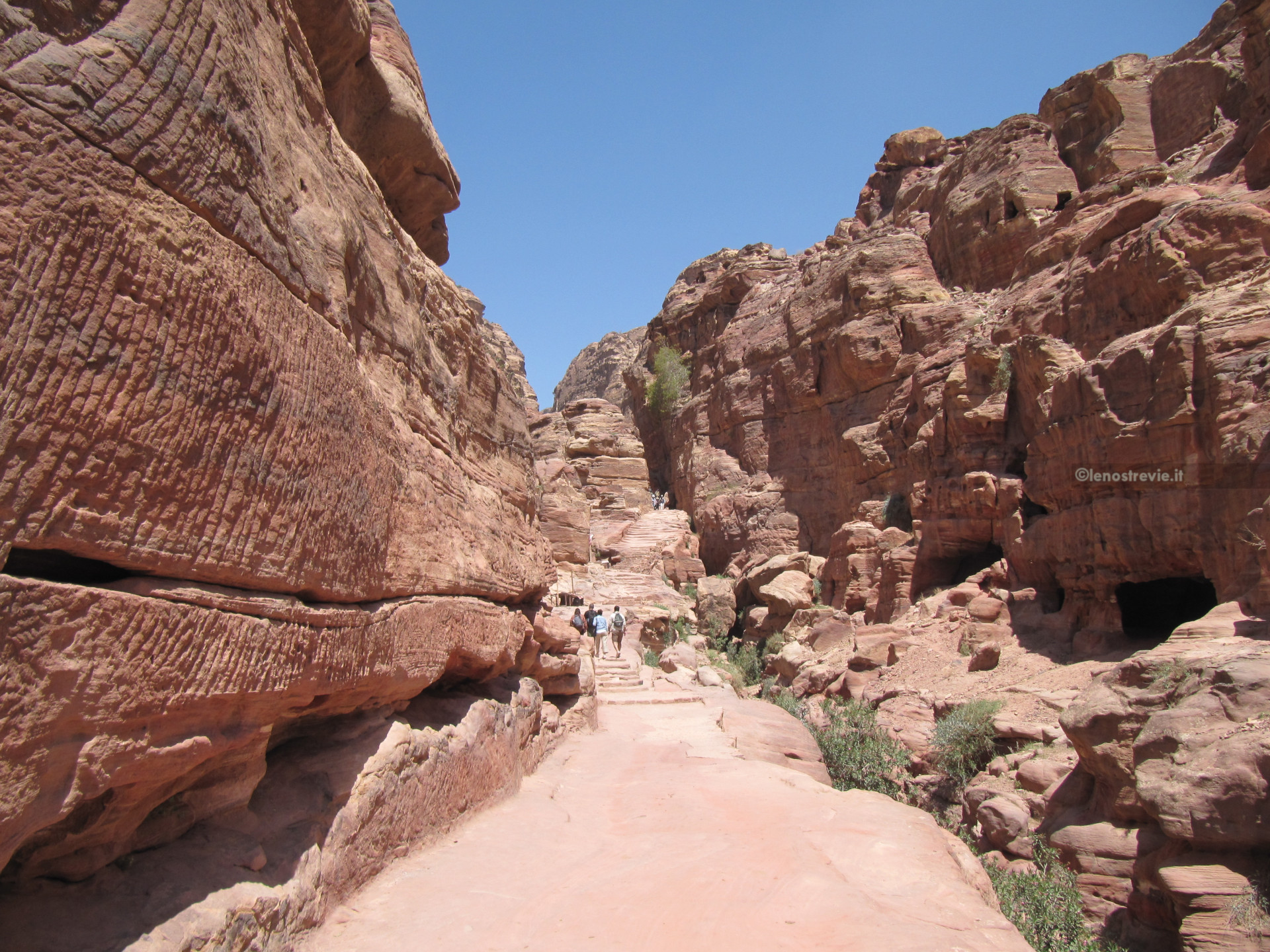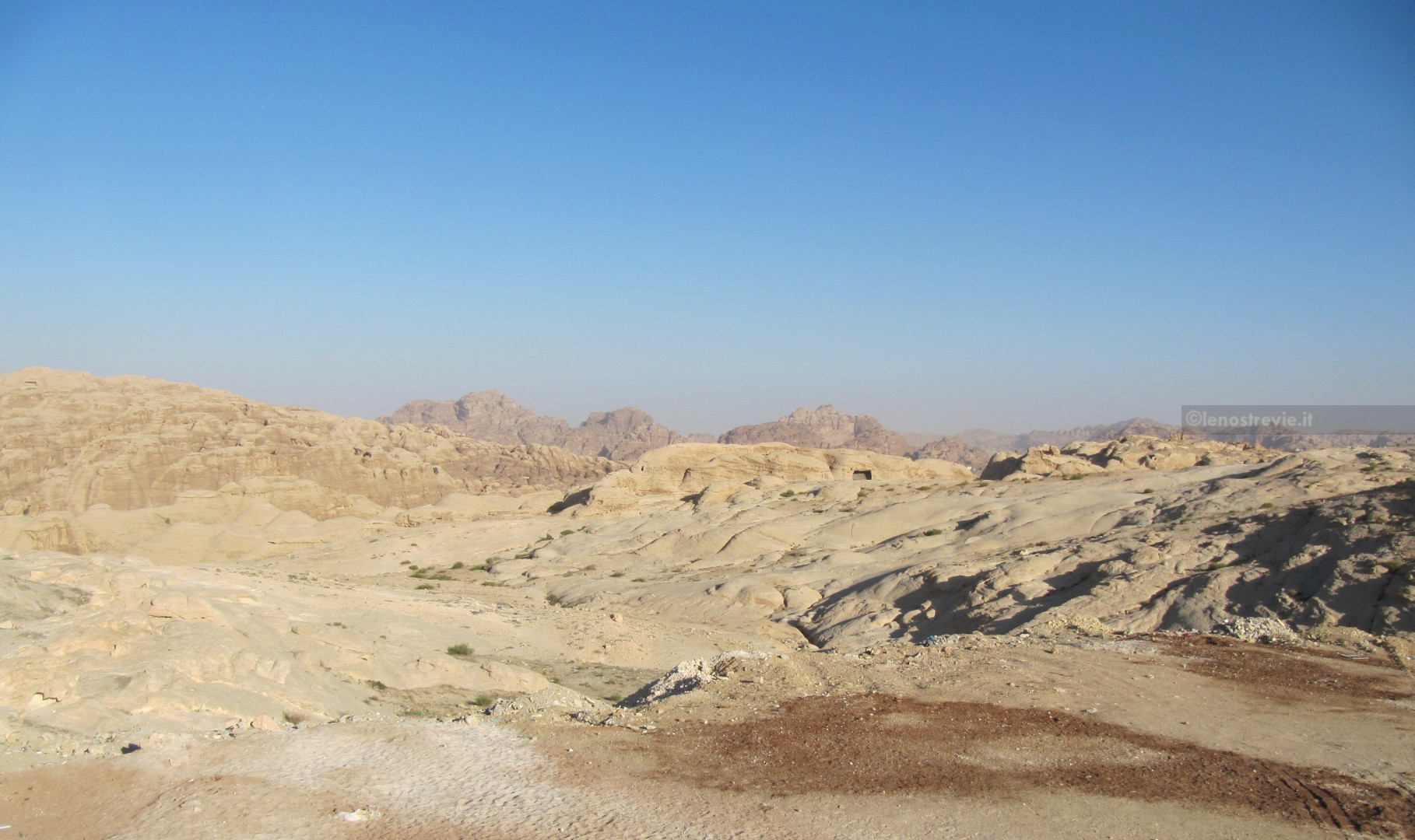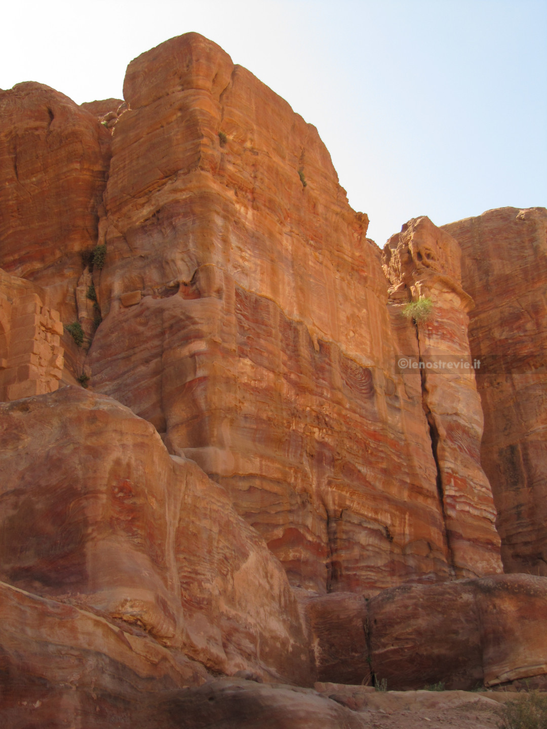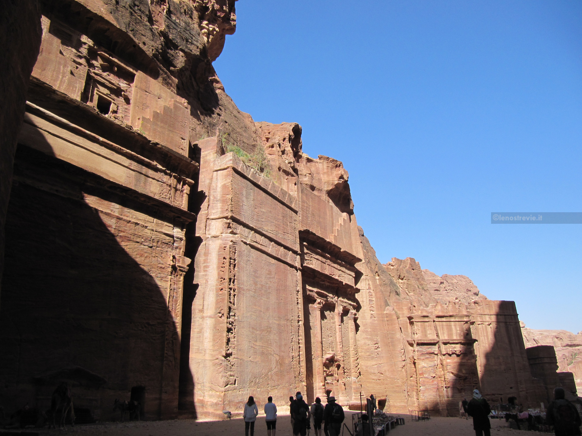 Il sole comincia a essere alto e la temperatura cambia repentinamente dal freddo al caldo, a seconda dell’ombra o del sole. Arriviamo a Petra antica, bella città semi-romana, ma siamo troppo abituati a lastricati e templi per impressionarci. In ogni caso, qui è tutto in pietra locale e non in marmo, quindi negli anni si è eroso e sono rimasti tronconi di colonne, innumerevoli pezzi a terra, semi-irriconoscibili.