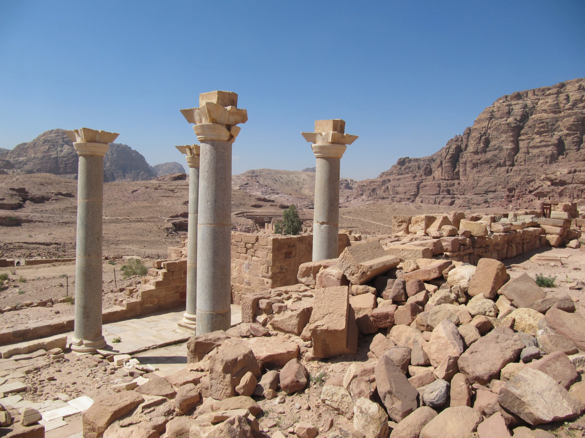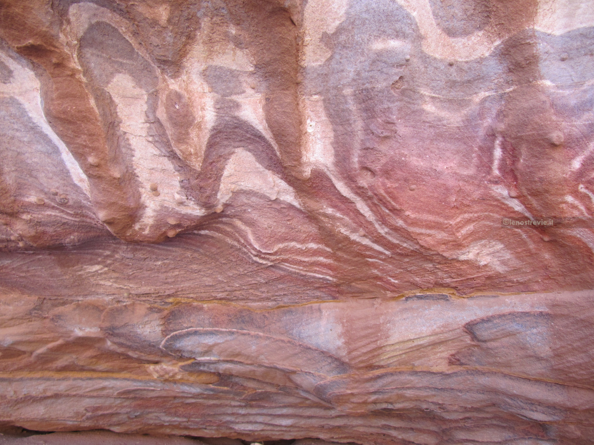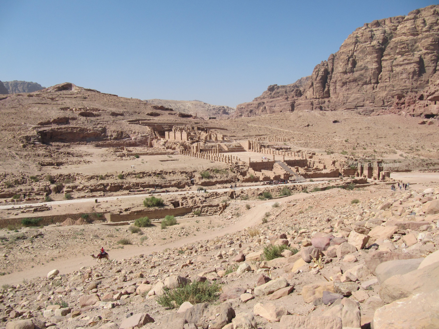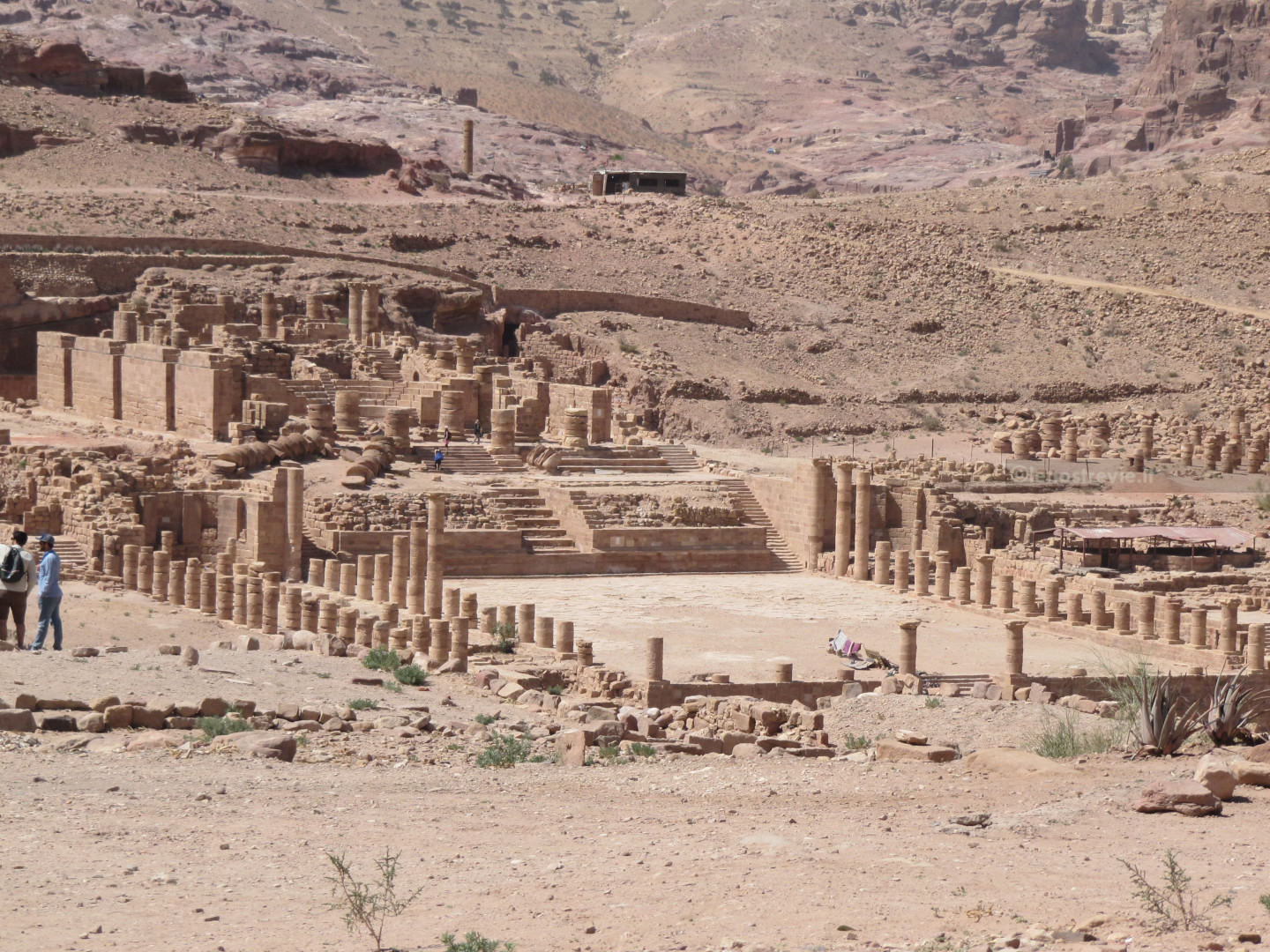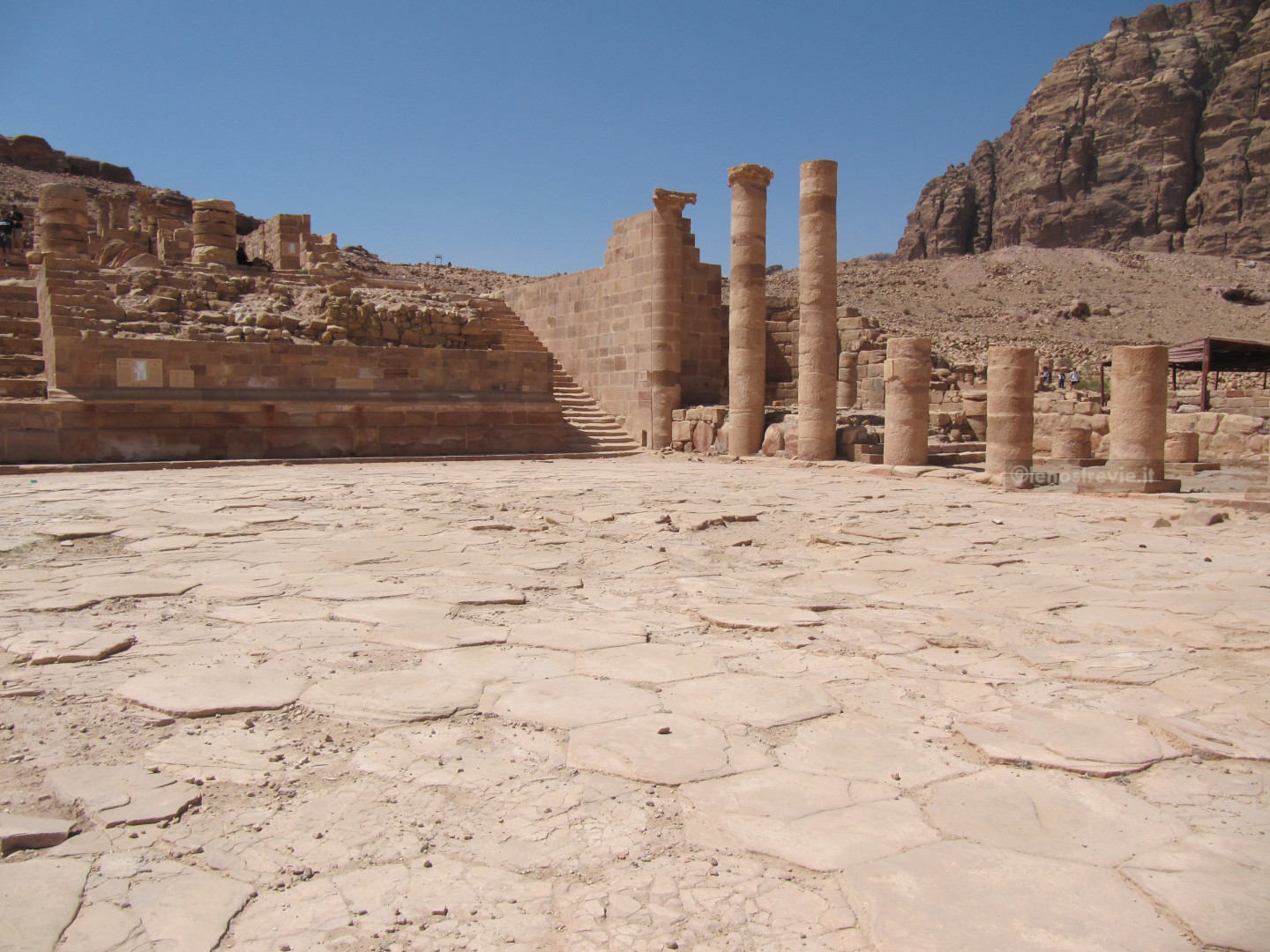 Il sole comincia a essere alto e la temperatura cambia repentinamente dal freddo al caldo, a seconda dell’ombra o del sole. Arriviamo a Petra antica, bella città semi-romana, ma siamo troppo abituati a lastricati e templi per impressionarci. In ogni caso, qui è tutto in pietra locale e non in marmo, quindi negli anni si è eroso e sono rimasti tronconi di colonne, innumerevoli pezzi a terra, semi-irriconoscibili.