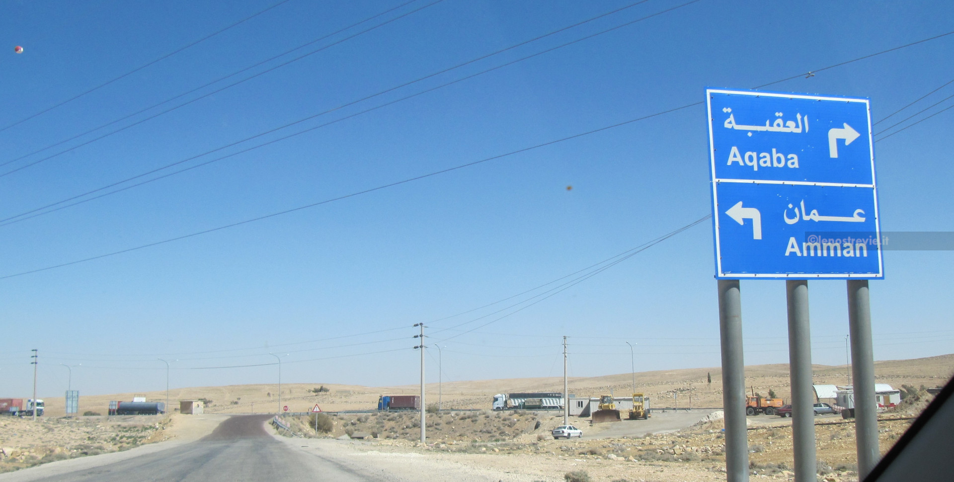 Questo tratto di HighWay è estremamente sconnesso, nonostante sia una autostrada e sia percorso da numerosi TIR diretti a Aquba (ma forse è proprio per quello). Sembra di andare a 90 all’ora con tutte le ruote bucate, inizialmente mette un po’ paura, ma dopo poco ci si abitua (vedendo anche tutti gli altri automobilisti che sfrecciano senza porsi problemi).