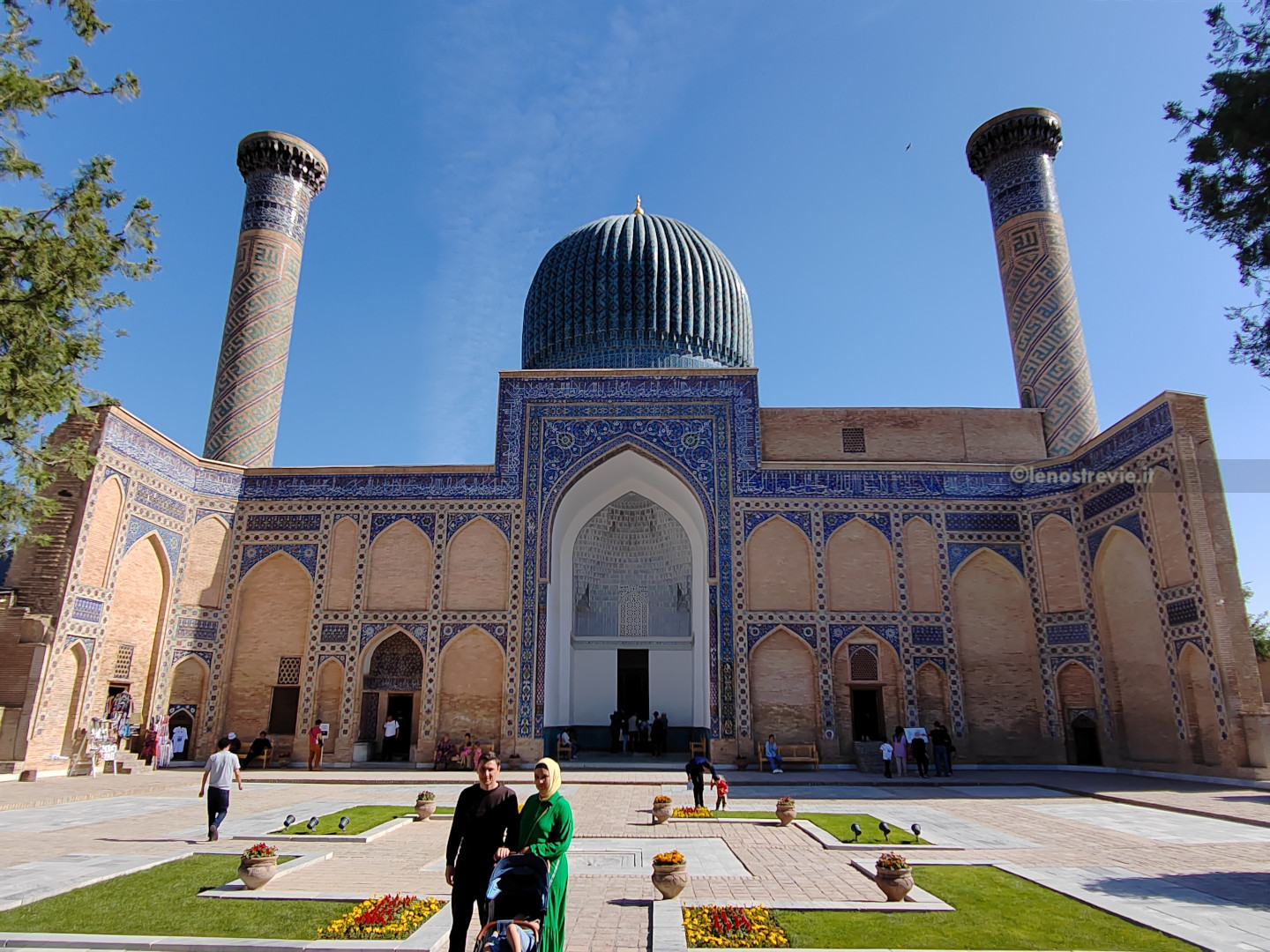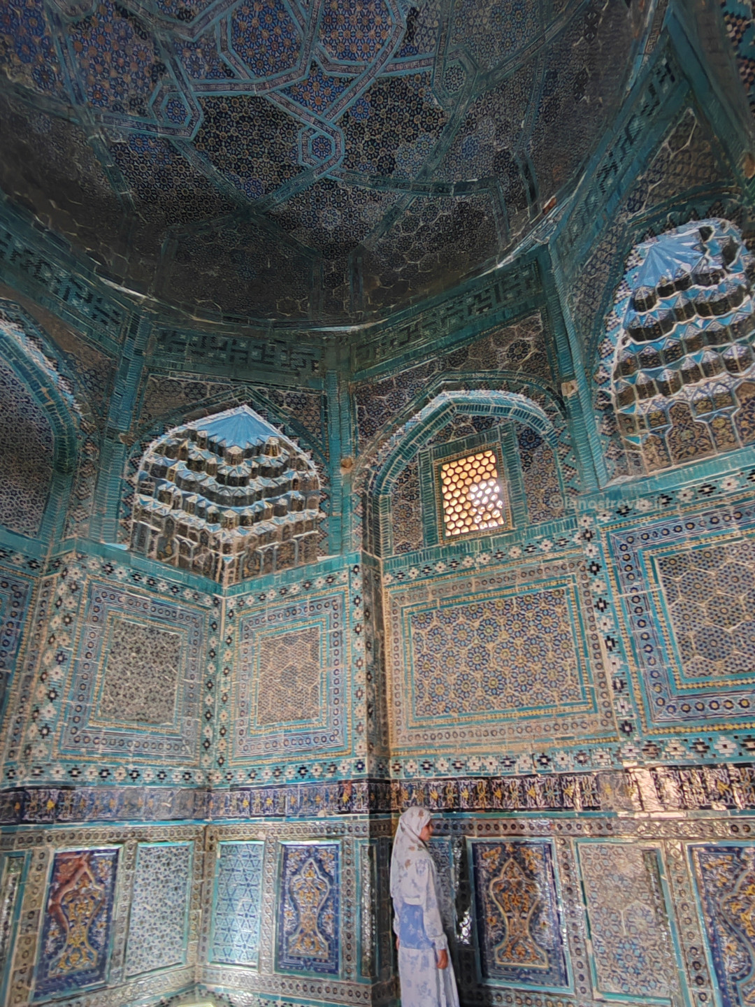 E’ a brevissima distanza dall’albergo, quindi lo raggiungiamo a piedi. C’è già molta gente, principalmente turisti locali. Gli edifici sono notevoli, con architetture arabo/persiane a mattonelline blu.