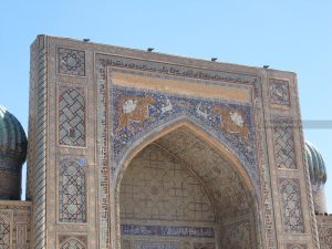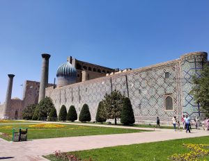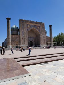 Dopo un riposino di due ore, aiutati dall’adrenalina, ci scuotiamo e usciamo per andare subito al Registan, luogo principale e iconico di Samarcanda. Si tratta di una piazza enorme dove si affacciano tre grandi madrase, visibile dall’esterno ma accessibile solo a pagamento.