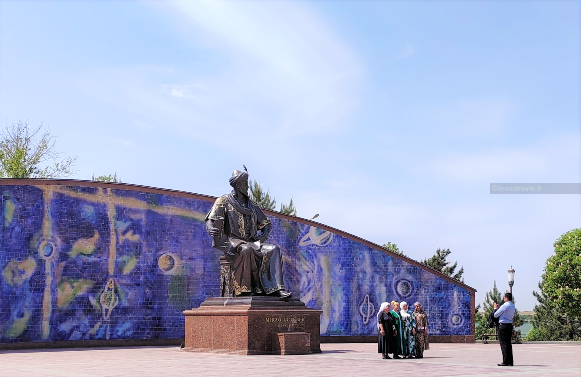 Il giorno successivo lo usiamo per vagare tra i luoghi non propriamente centrali. Andiamo all’osservatorio di Ulug Beg (nipote di Tamerlano), una struttura sotterranea che insieme alla parte esterna (scomparsa) creava un sestante enorme. Il vicino museo è affollato di scolaresche e poco illuminato. All’esterno una statua di Ulug Beg è lo sfondo per foto turistiche.