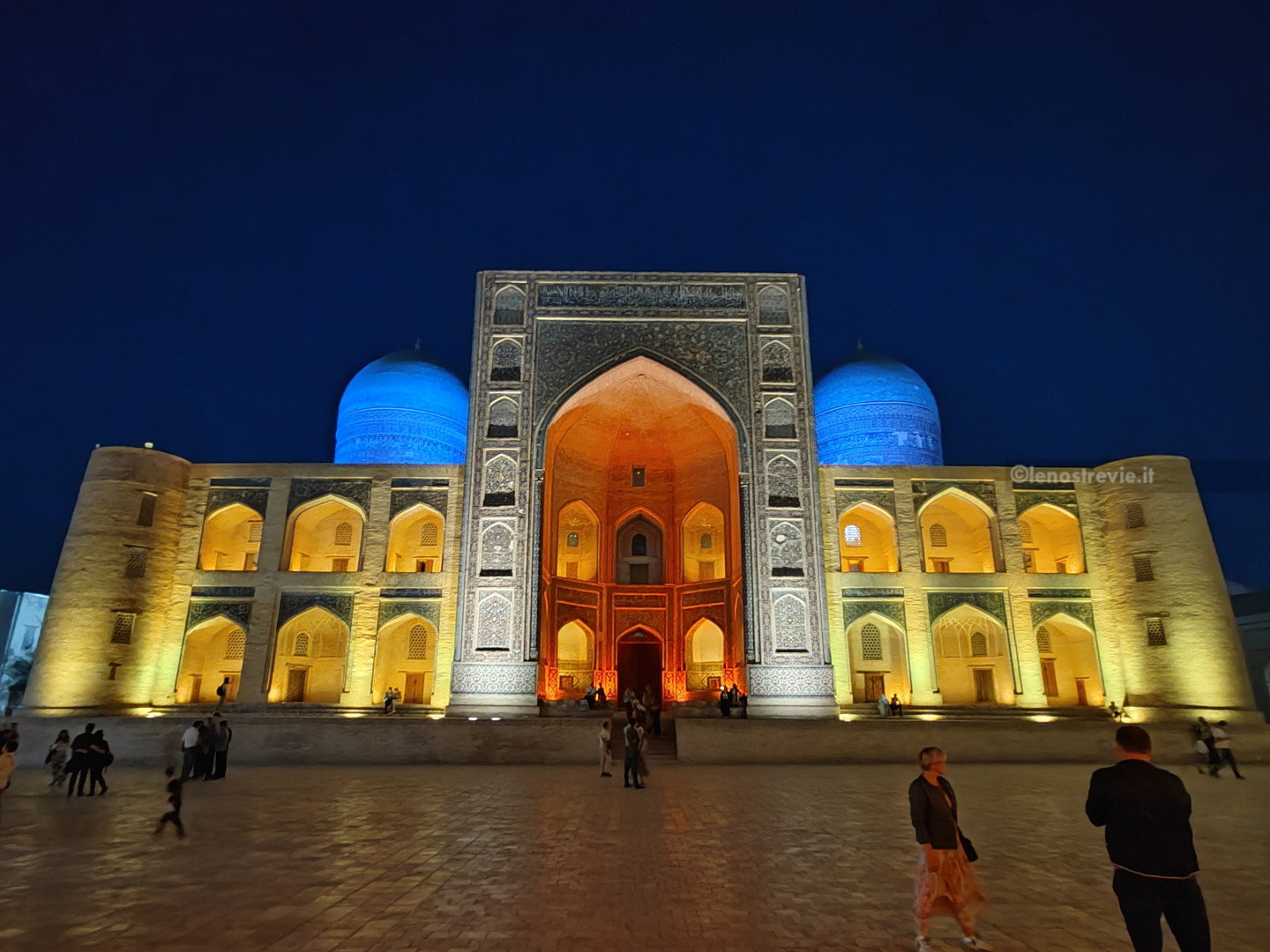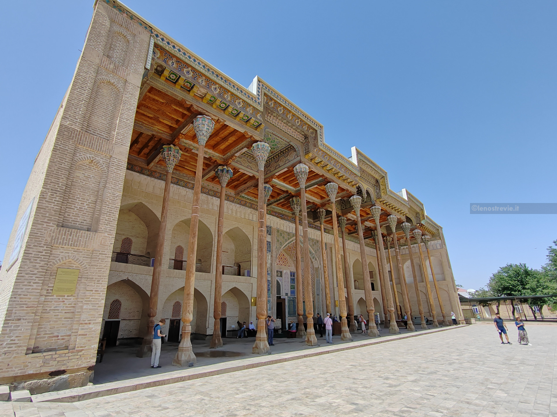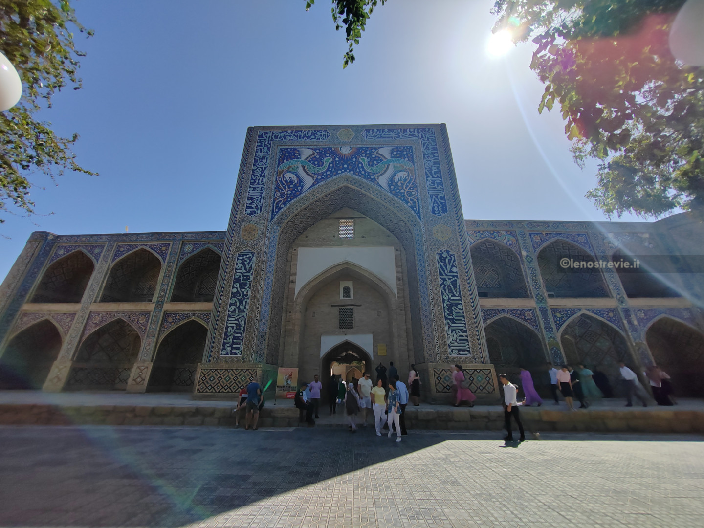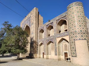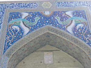 Ci dirigiamo subito verso il centro, superiamo il bazar Taki-Sarrafon e, attraverso stradine interne, arriviamo al Khanqah Nodir Devonbegi, un’antica residenza per mistici sufi, e all’antistante madrasa di Nadir Divanbegi (particolarissima la facciata con i mitici uccelli simurg).