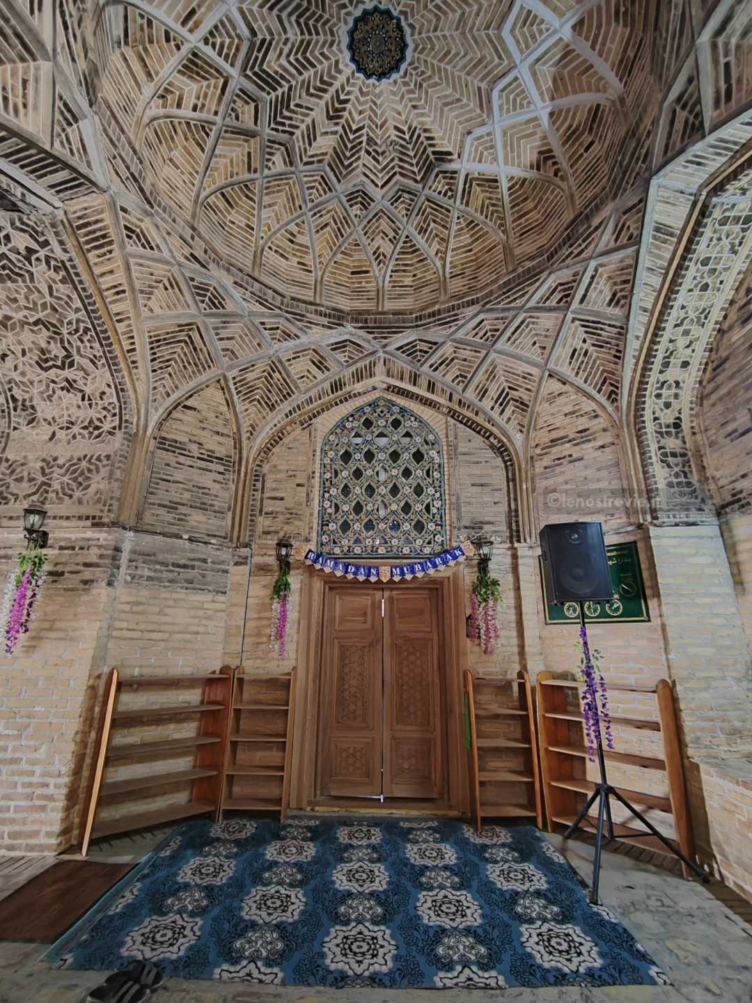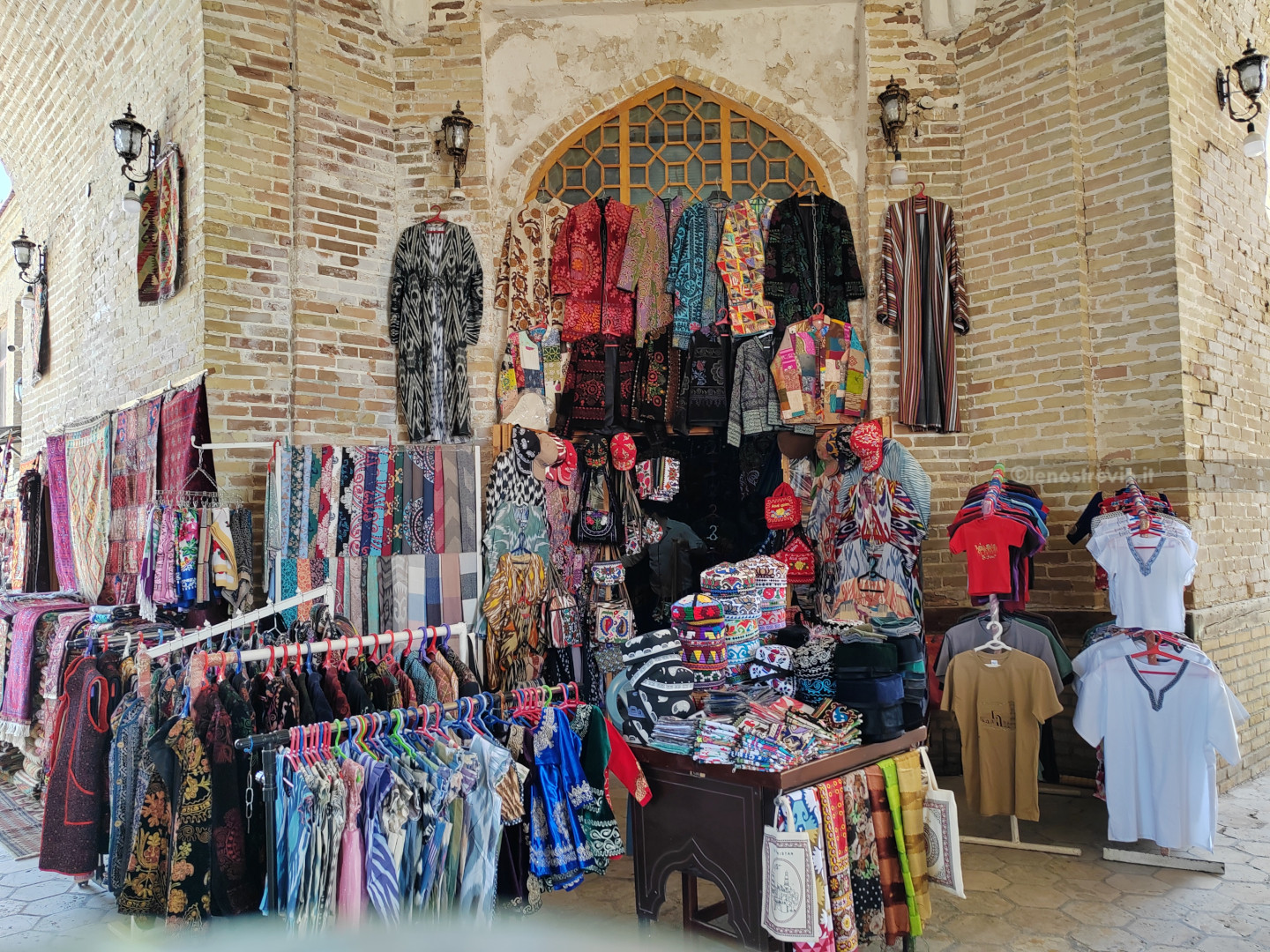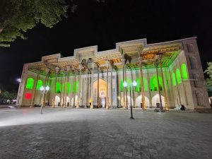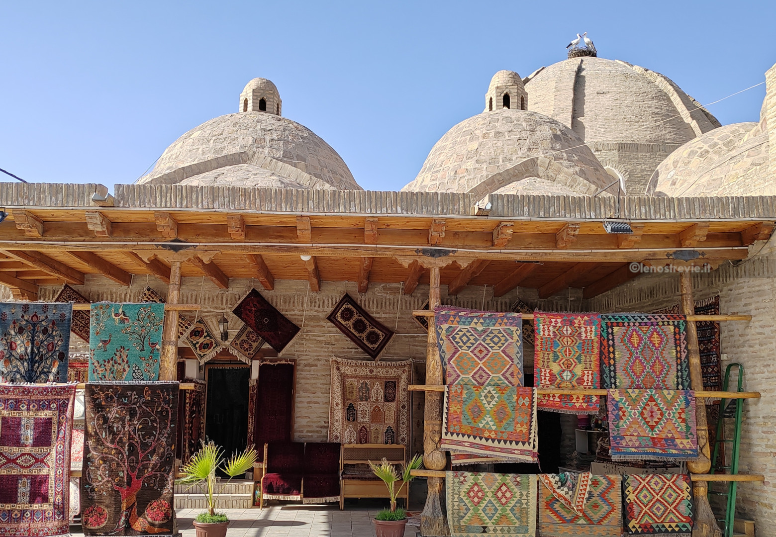 Ci dirigiamo subito verso il centro, superiamo il bazar Taki-Sarrafon e, attraverso stradine interne, arriviamo al Khanqah Nodir Devonbegi, un’antica residenza per mistici sufi, e all’antistante madrasa di Nadir Divanbegi (particolarissima la facciata con i mitici uccelli simurg).