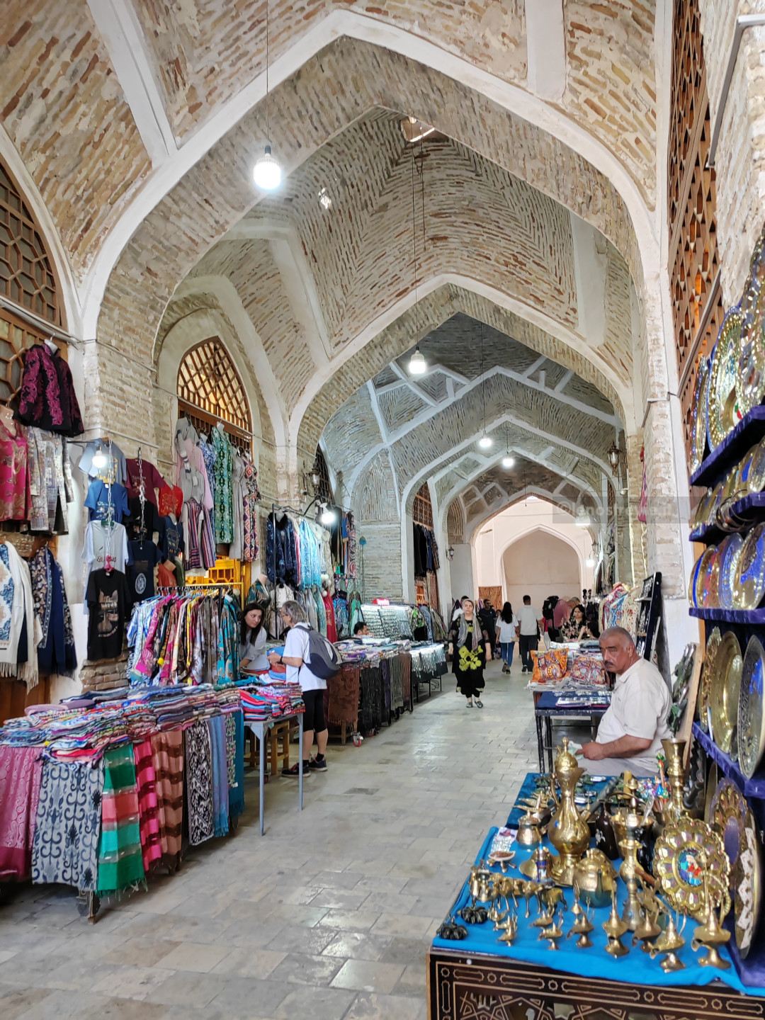 Nella calura, all’ombra degli onnipresenti gelsi, proseguiamo per le stradine pedonali, passando attraverso un bazar (Taki-Zargaron). Visitiamo altre madrase non restaurate e, per questo, ancora più affascinanti. Girelliamo ancora un po’ e torniamo in hotel per riposarci prima della cena in un piccolo ristorante locale.