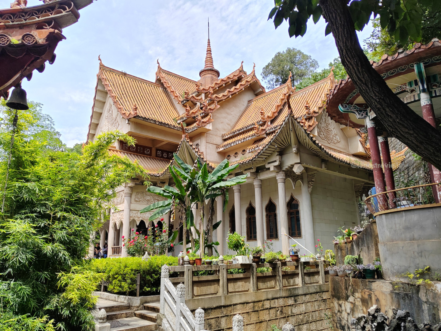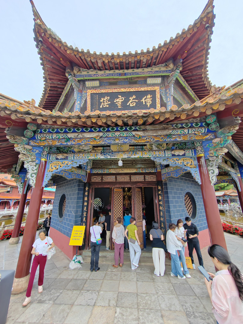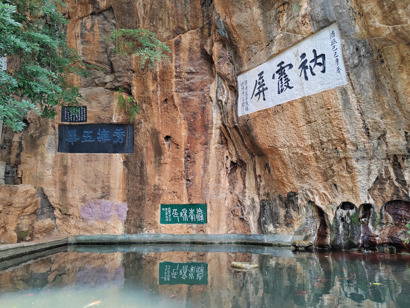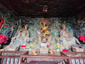 Lungo il percorso sono presenti tempietti scavati nella roccia con statue devozionali tra cui alcuni “guardiani” ed al termine un bassorilievo dorato di Kui Xing, il dio cinese degli esami. Il dio regge tipicamente un pennello da scrittura cinese con la mano alzata.