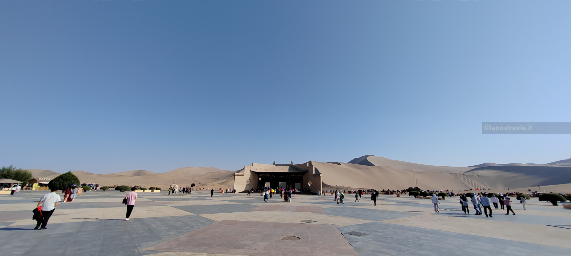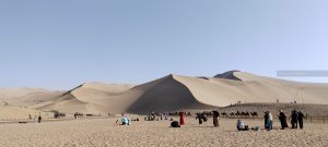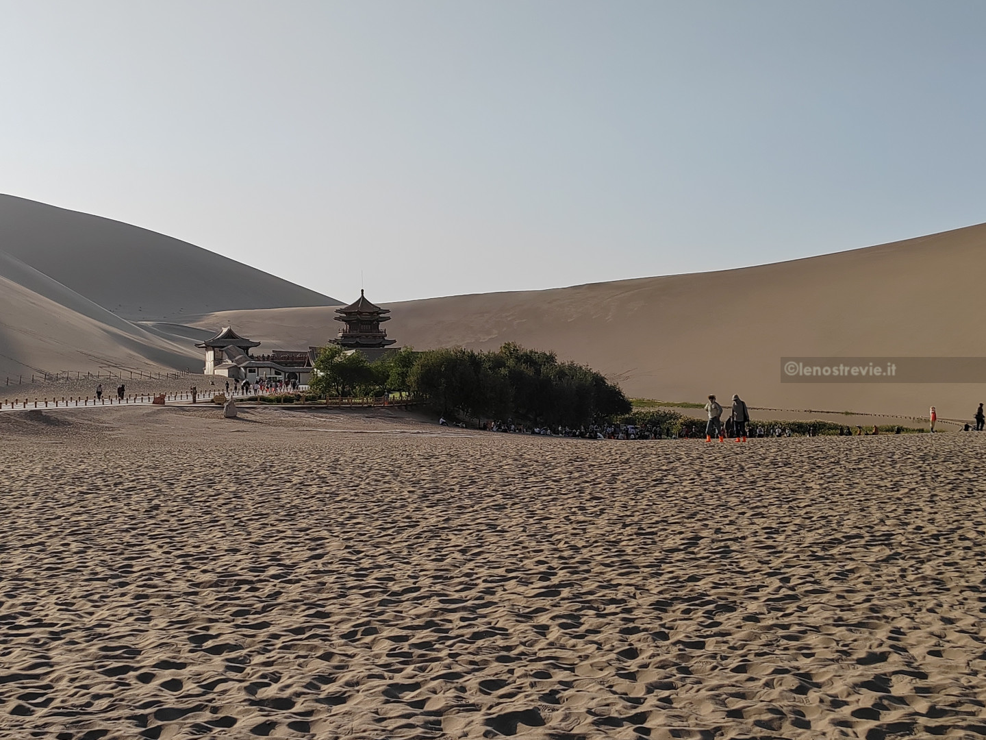 Facciamo anche noi decine di foto, andiamo a piedi a vedere anche il “crescent lake” una sorgente tra le dune che ha creato un laghetto a forma di mezzaluna, con tanto di pagoda sulla riva. Soddisfatti torniamo all’hotel per doccia e cena.