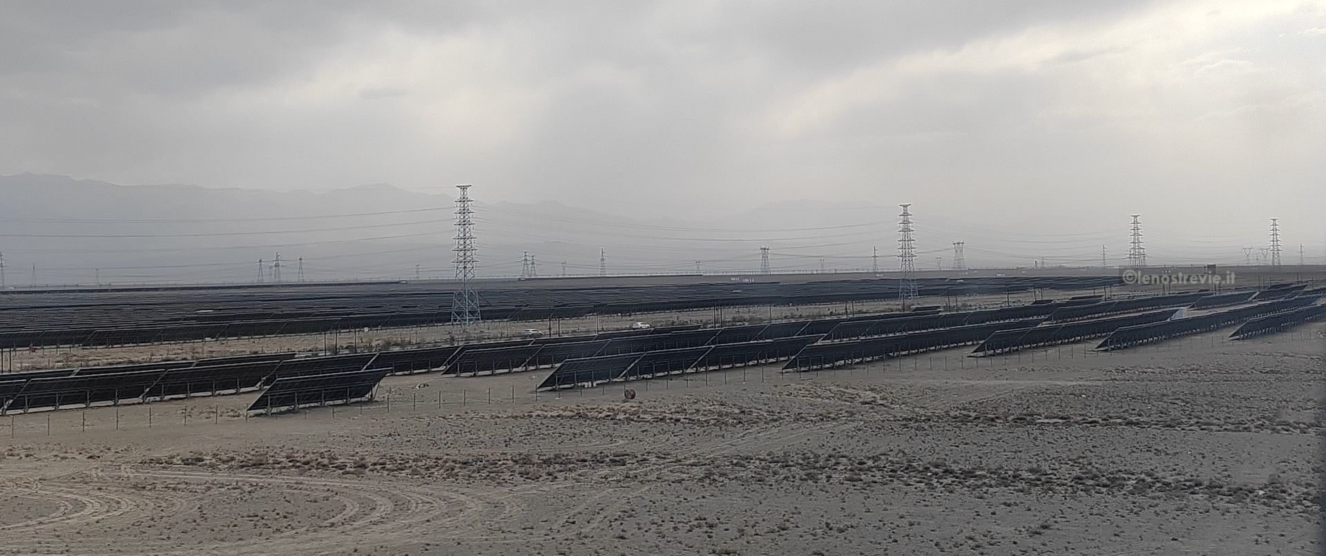Il viaggio in treno da Jiāyùguān a Dunhuang è lungo. Attraversiamo distese infinite di deserto con tralicci, pale eoliche, pannelli solari, centrali, nonché camion polverosi su piste. Il deserto all’inizio è nero, poi si intervallano zone verdi accanto a villaggi di case di fango e paglia, infine bianco.