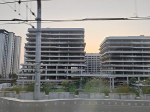 Il tragitto in metropolitana verso l’albergo percorre molti tratti esterni, e ci mostra una quantità enorme di edifici in costruzione o semi-completi ma vuoti e con cantieri chiaramente fermi.
