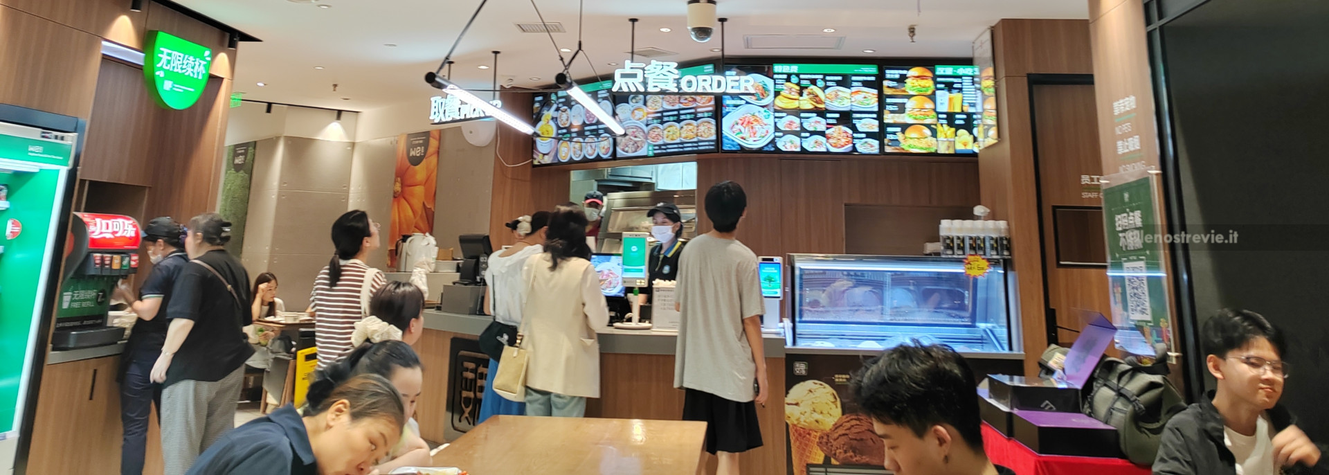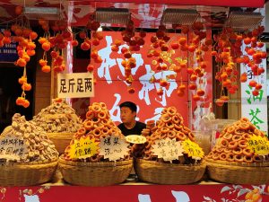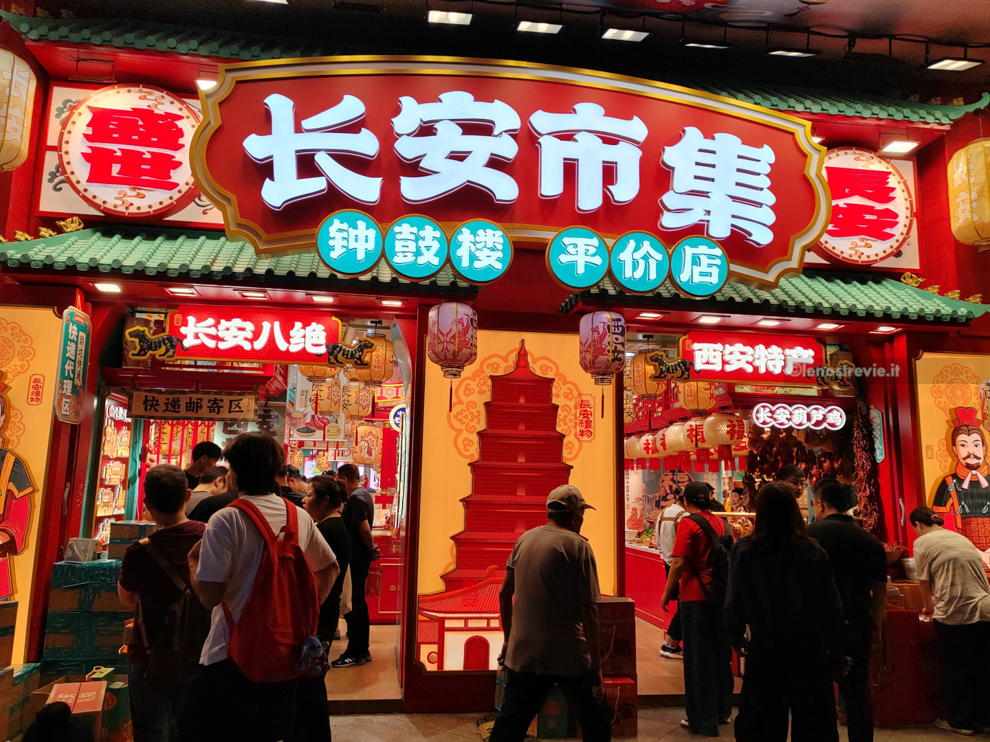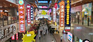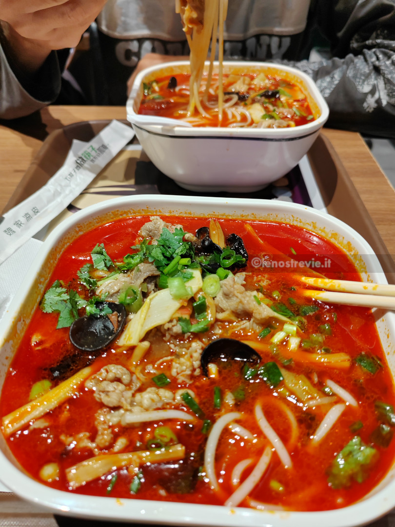 Arriviamo, la zona è caotica con luci e insegne simil-brodway, piena di chioschi, negozi/ristoranti, e affollatissima. Cerchiamo un posto dove mangiare tra i chioschi, ma non ci convincono e ripieghiamo su un ristorantino con menù appariscente, ma che si rivela più di forma che di sostanza. Comunque sono gentili e accettano l’ordine “a voce” dato che l’app del ristorante è solo in cinese.