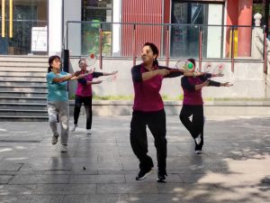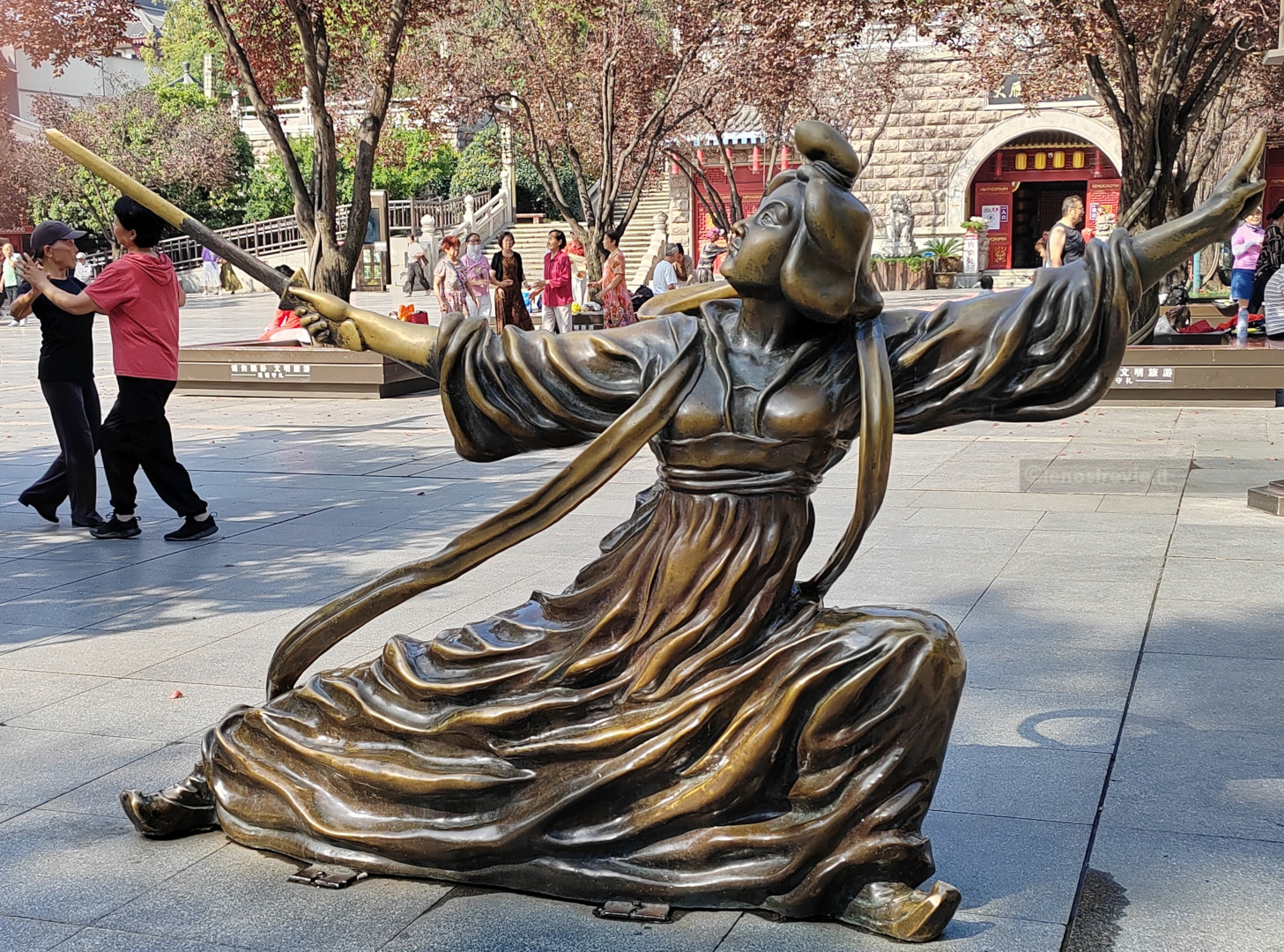 Il giorno successivo 15 settembre, è una giornata calda, facciamo colazione e andiamo a visitare la Pagoda della Grande Oca Selvatica. Vicino al tempio incontriamo donne intente a danzare e altri gruppi impegnati in vari esercizi fisici.