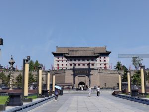 Nell’enorme cortile antistante ci sono due torri che contengono il Tamburo e la Campana (elementi grandi quanto l’edificio che li contiene, che troviamo in tutte le città cinesi).