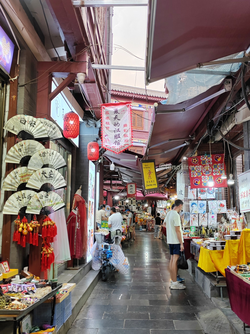 Il volo da Dunhuang dura 45 minuti in meno del previsto, un vento di coda ci fa correre e ballare per tutto il tragitto. All’arrivo a Xi’an troviamo un mega aeroporto. Prendiamo la metro e ci mettiamo quasi due ore per arrivare nella zona centrale dove abbiamo l’albergo. Ce lo aspettavamo, Xi’an è enorme, con 12 milioni di abitanti, capoluogo della provincia di Shaanxi, unica tappa del viaggio in questa regione.
