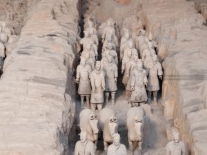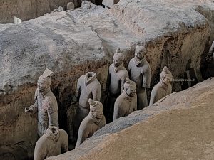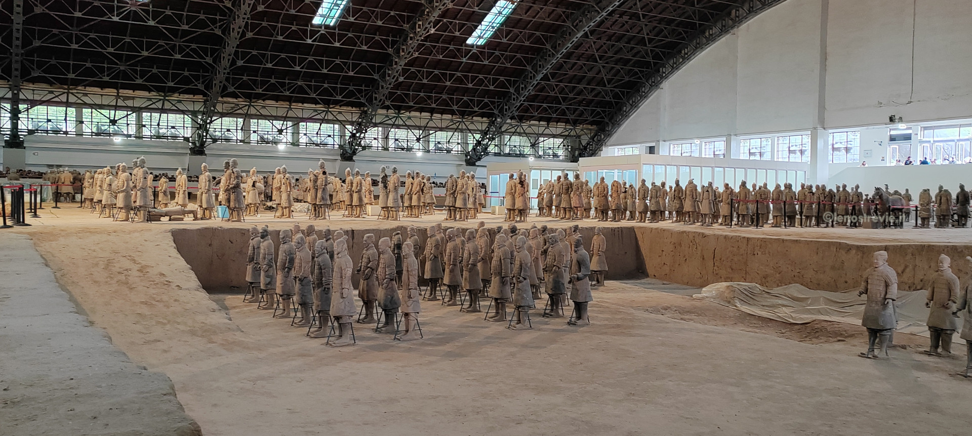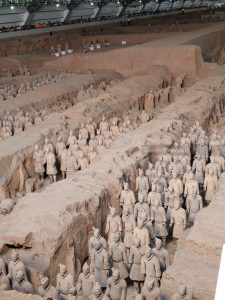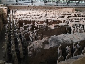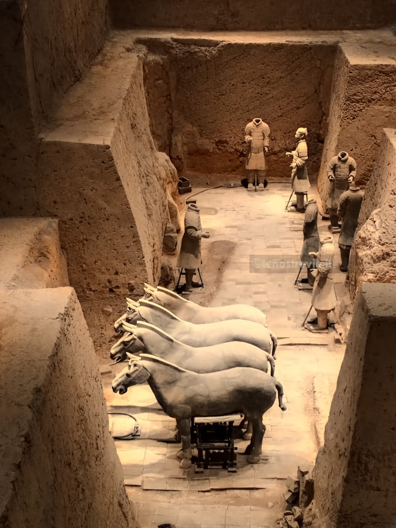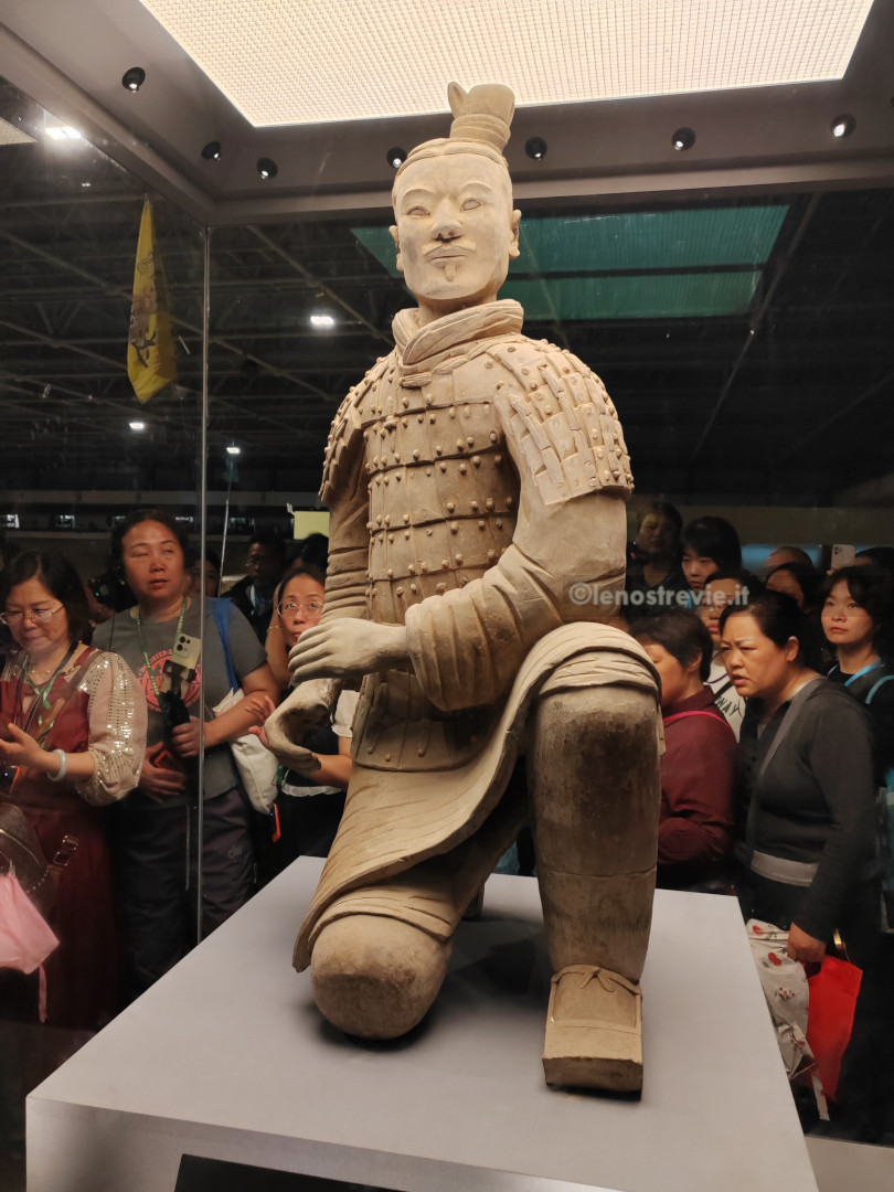 Facciamo anche noi il giro sgomitando. In ogni caso lo spettacolo è impressionante. L’esercito è lì, allineato e enorme: circa 6000 guerrieri, ciascuno con i propri tratti somatici, con diversi tipi di armatura e in posizione di battaglia. Gli scavi sono ancora attivi e in alcune parti le statue sono in fase di restauro. Terminiamo il giro e passiamo al secondo edificio.