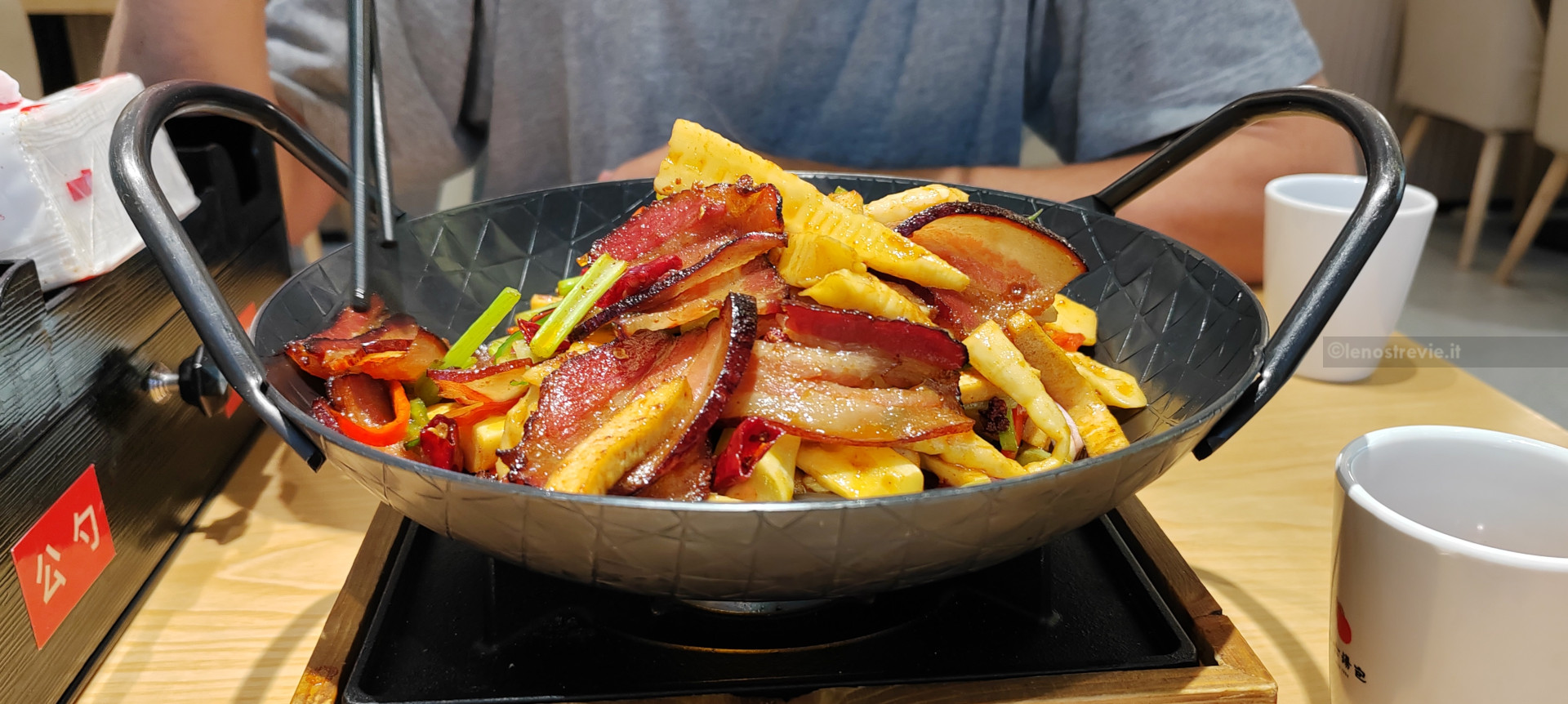 Finalmente ha smesso di piovere, e l’aria è più fresca. Scegliamo un fast-food locale dove ceniamo con noodles in brodo di verdure.
