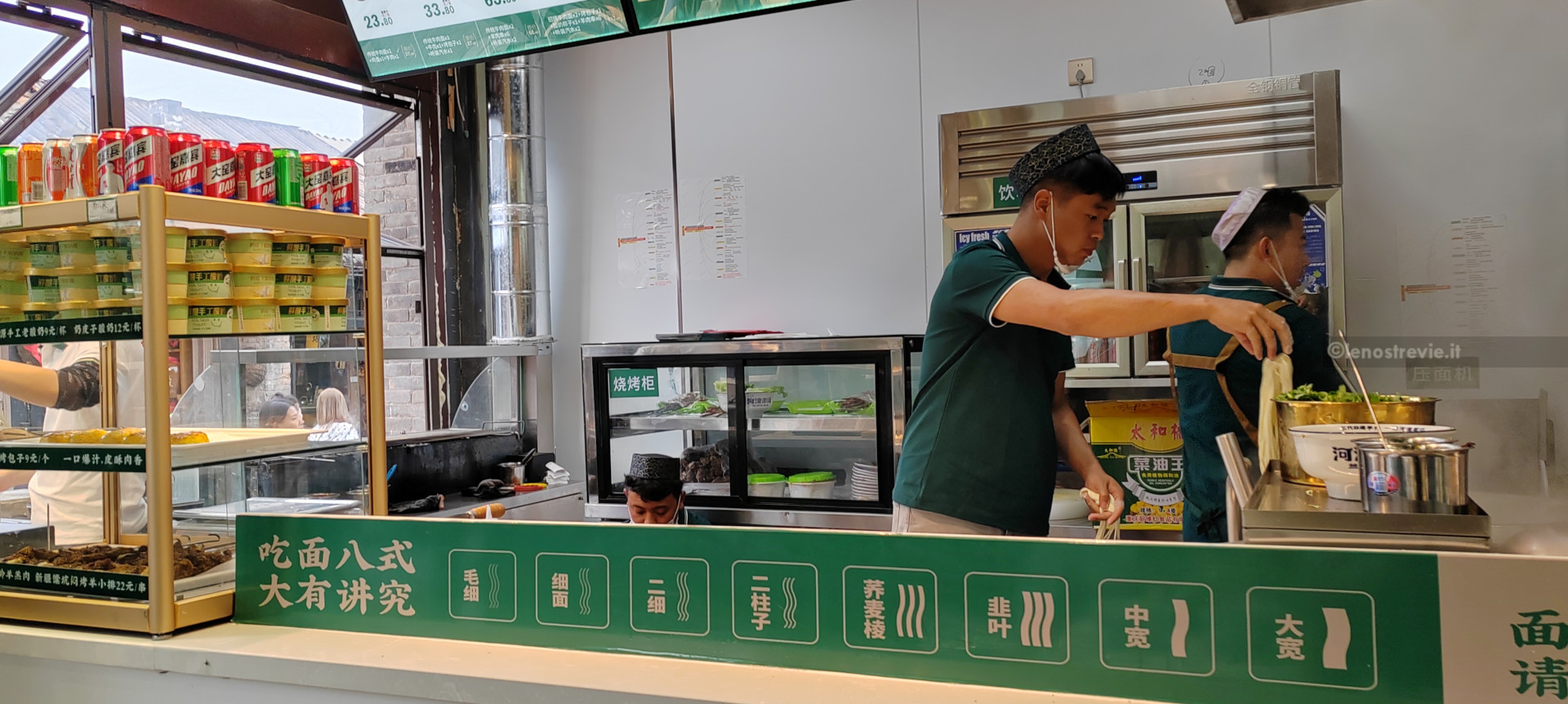 Per spezzare le visite, dato che fa ancora freddino, ci fermiamo a pranzare in un ottimo ristorante locale con dei noodles in brodo fatti a mano (stirando la pasta!) mentre a cena ci accontenteremo di qualche dolcetto dai chioschi.