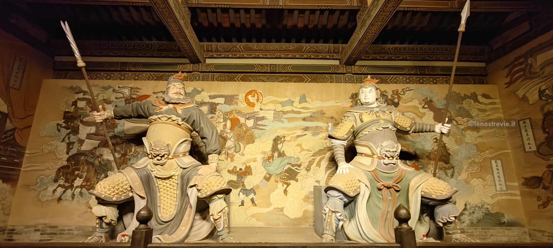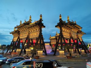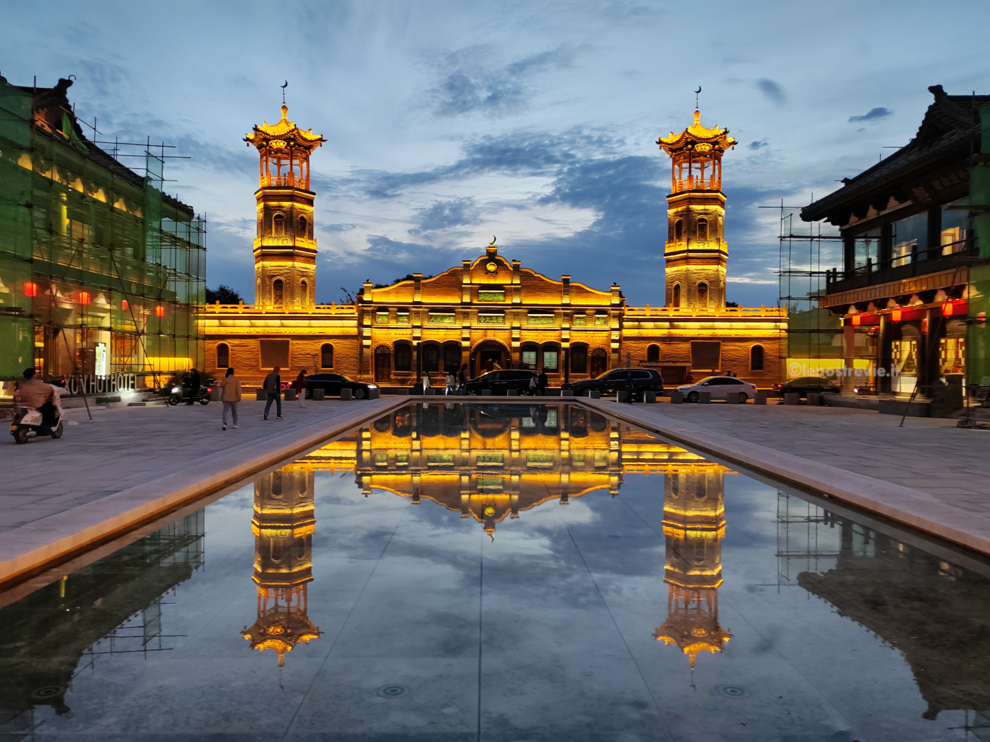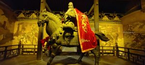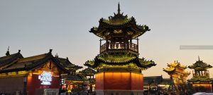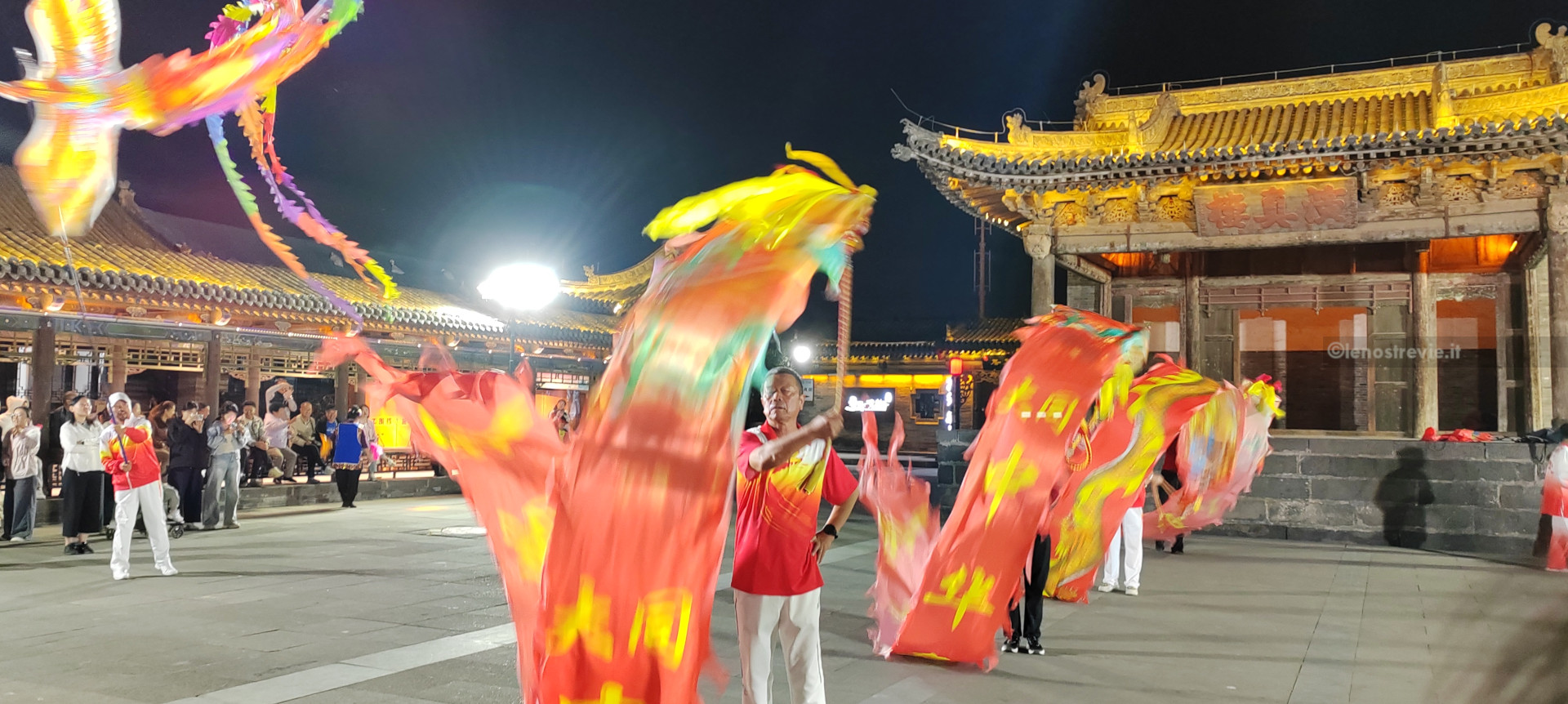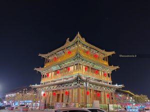 Dopo cena, altro giretto serale. Vediamo la moschea sul bordo della zona pedonale, assistiamo a uno spettacolo di danza con musiche e coreografie, visitiamo un tempio taoista della città con le tipiche statue dei guerrieri.