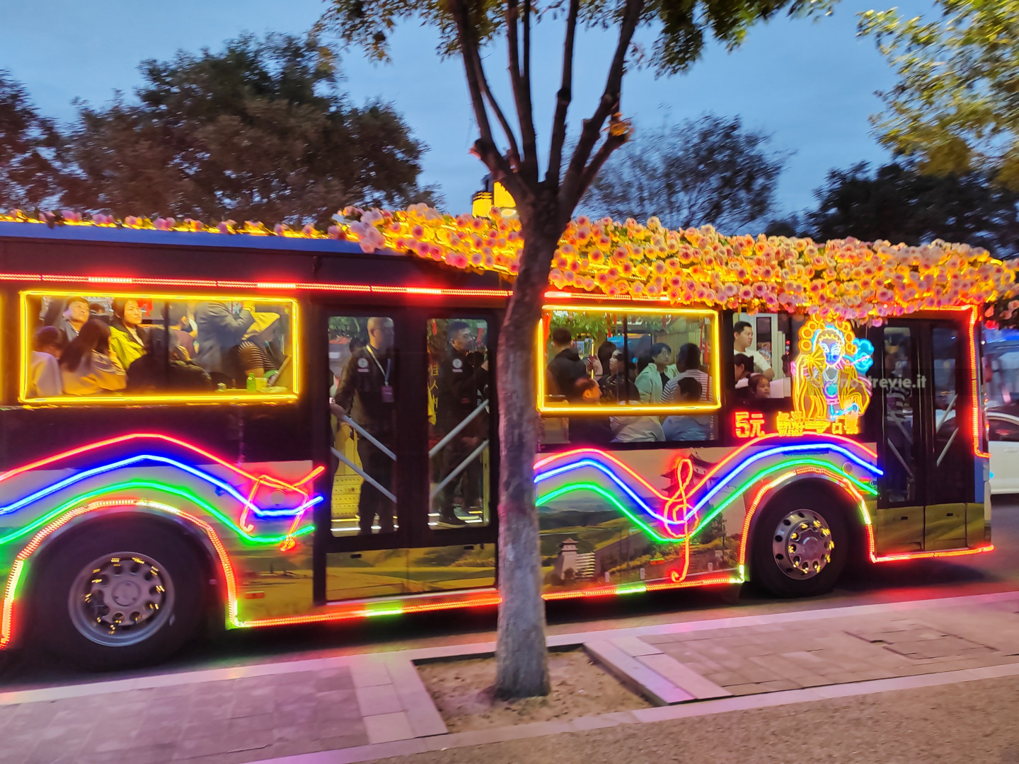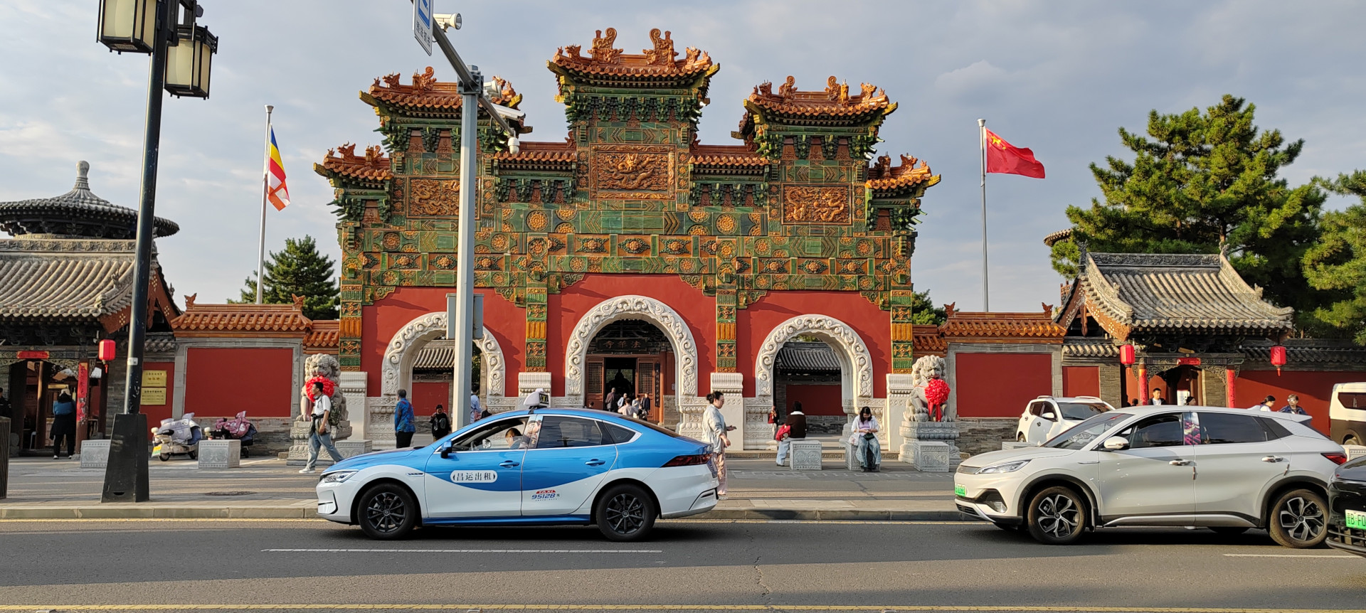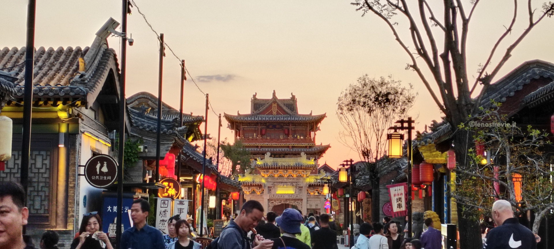 Dopo cena, altro giretto serale. Vediamo la moschea sul bordo della zona pedonale, assistiamo a uno spettacolo di danza con musiche e coreografie, visitiamo un tempio taoista della città con le tipiche statue dei guerrieri.