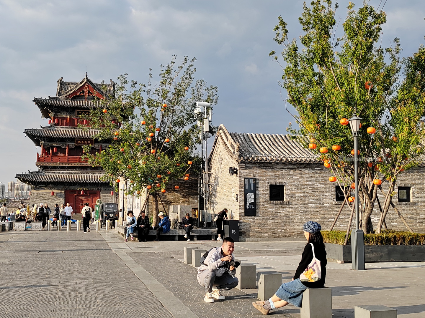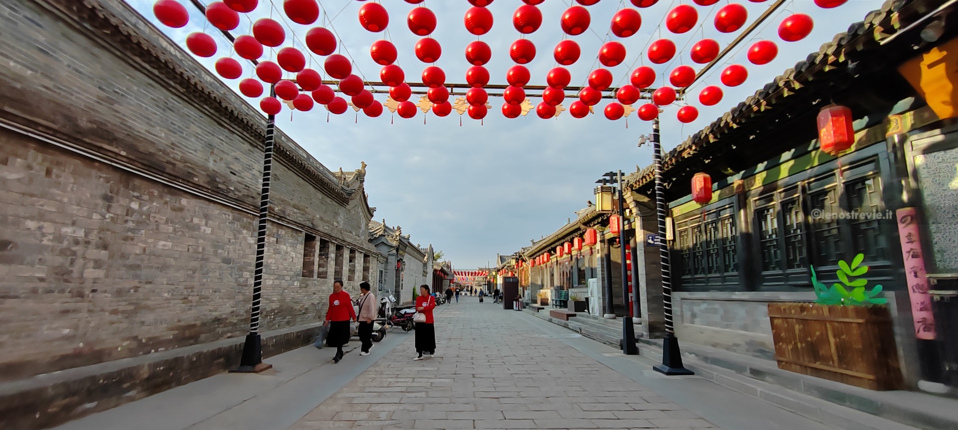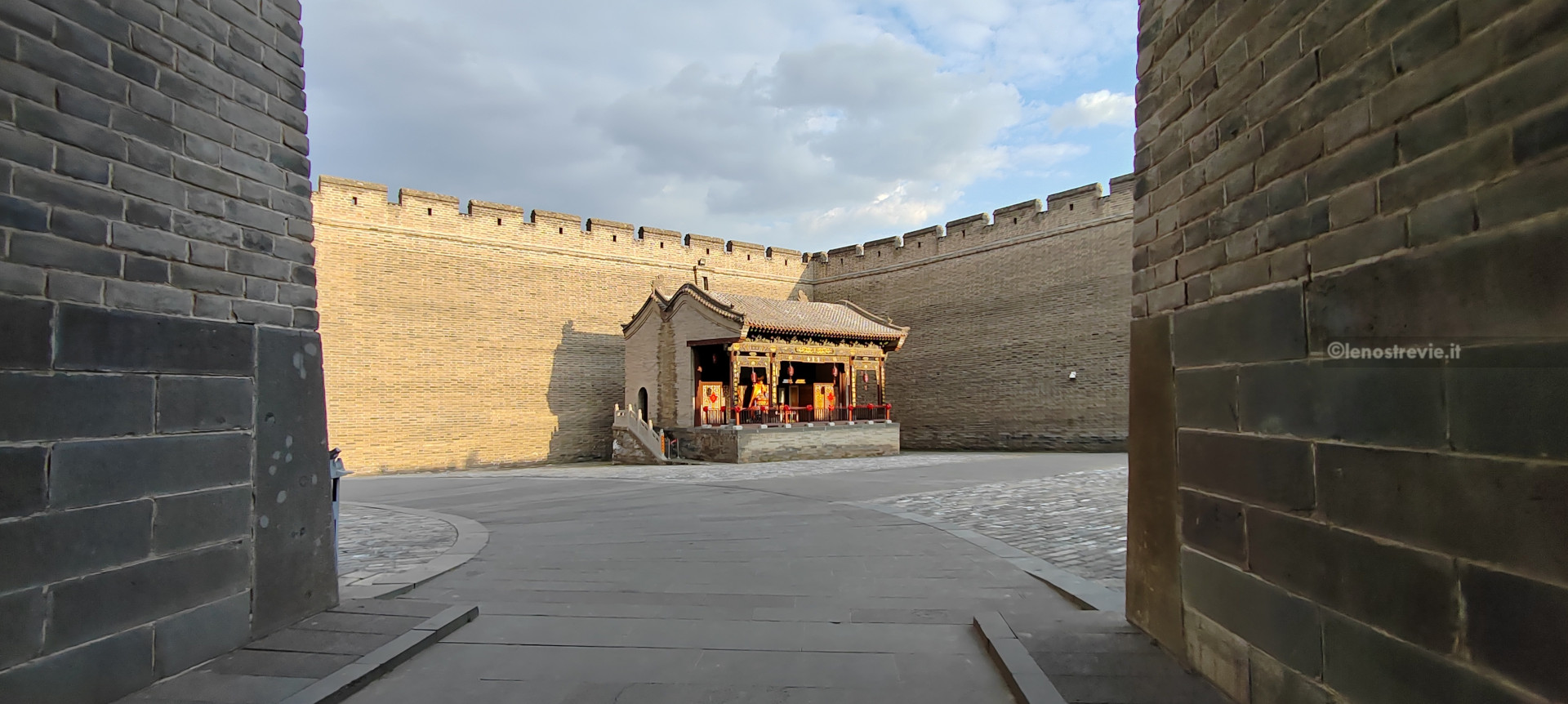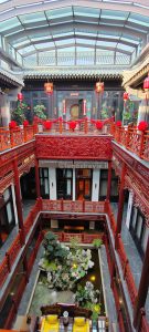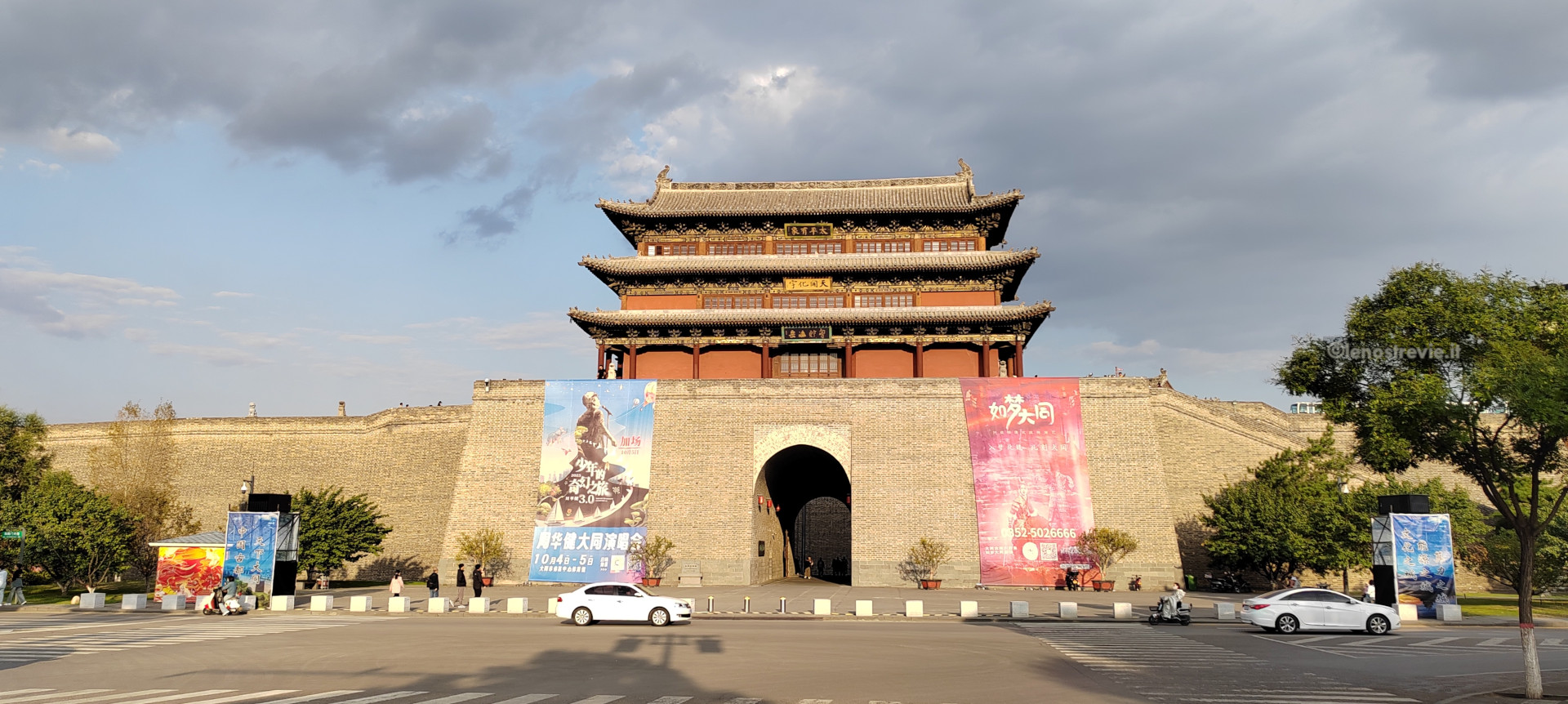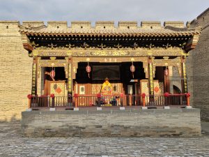 Con il treno in due ore siamo a Datong. La stazione è grande e ben organizzata, le indicazioni sono in due lingue e portano facilmente alla fermata del bus. Lo prendiamo e ci porta a 100 metri dall’hotel. Entriamo nel perimetro della città vecchia e scopriamo che è.. nuova! Sembra un set cinematografico: tutto è perfetto, pulitissimo e semideserto. Edifici bassi, in stile ma totalmente nuovi, con lavori di rifinitura in corso.
