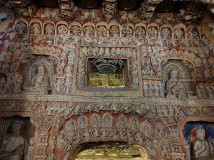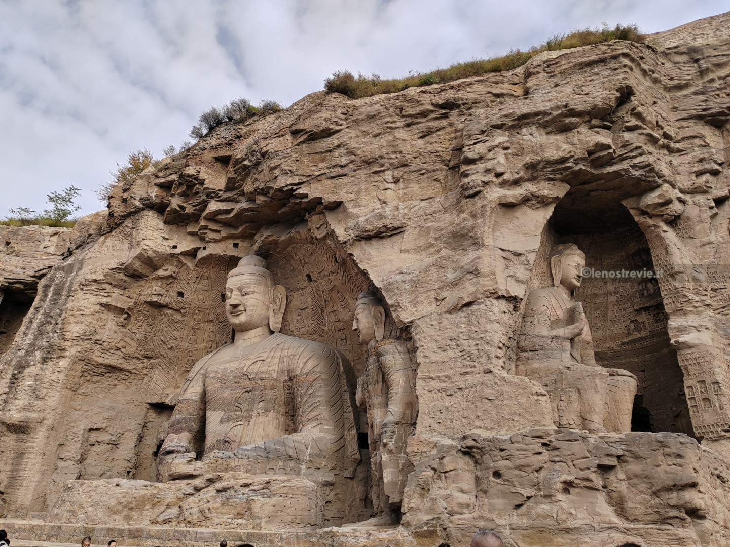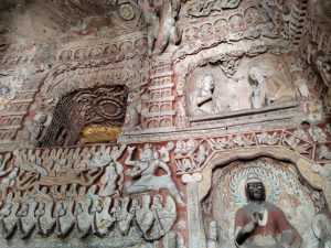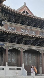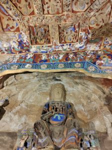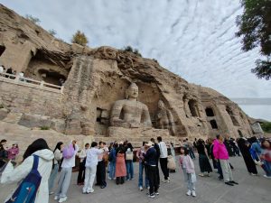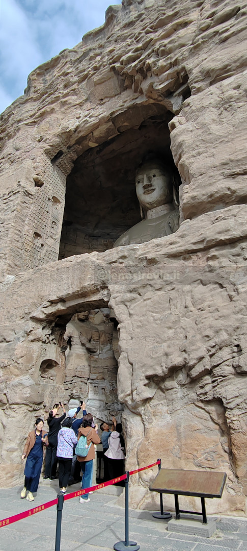 21 settembre, di nuovo sveglia presto. Oggi pomeriggio abbiamo il treno per Pechino. C’è tempo per andare a vedere le grotte di Yungang: sono abbastanza vicine ma non sappiamo di preciso quanto ci vuole per cui, visto il tempo contingentato, decidiamo di raggiungerle in taxi. Prenotiamo con DIDI (super esperti) e arriviamo in meno di mezz’ora. Il sito è UNESCO ma fortunatamente non è ancora stato trasformato in uno dei soliti luna-park.