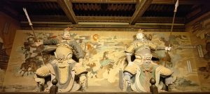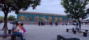 Facciamo una passeggiata all’imbrunire per le vie sempre animate della città. Andiamo a vedere il tempio di Confucio vicino all’albergo, come sempre molto spoglio, ma ampio e silenzioso; visitiamo poi il nostro secondo muro dei nove draghi: rispetto a quello di Pingyao è molto più grande e in effetti scopriamo che è il più grande della Cina.