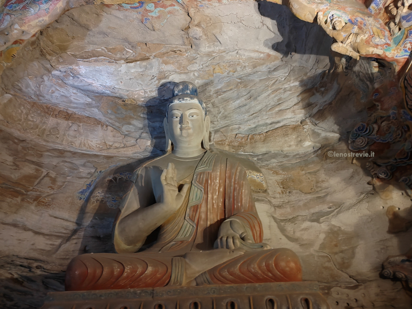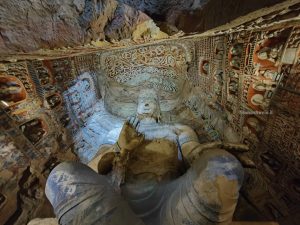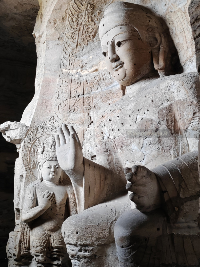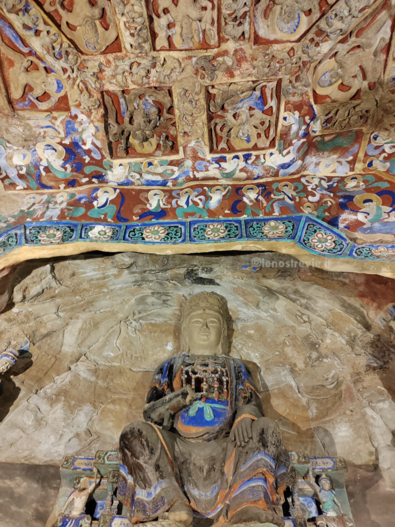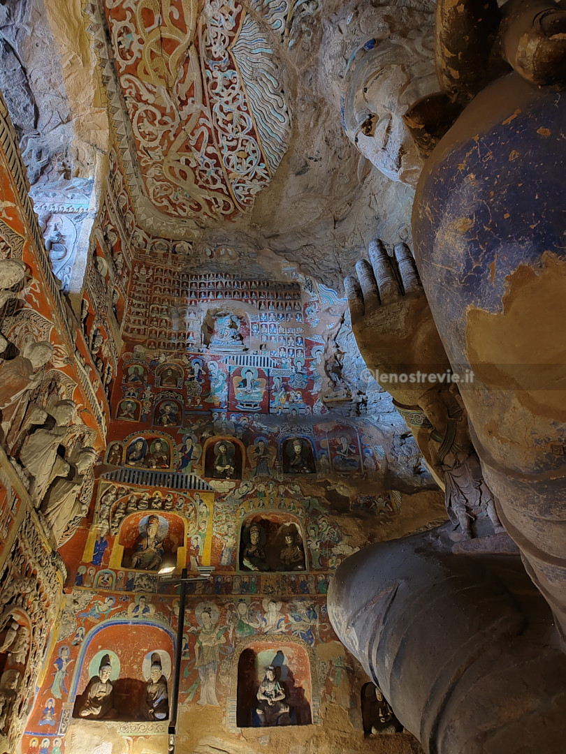 Il sito è bellissimo, colorato e imponente, molto più bello (a nostro parere) delle sopravvalutate grotte di Mogao. Le grotte sono enormi, con bassorilievi e affreschi ancora ben tenuti, e statue gigantesche di Buddha scavate nella roccia.
